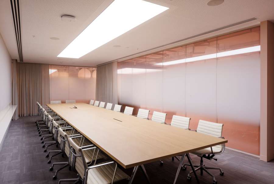 With more than 800 staff across 15 agencies, managing noise was also a key consideration. FDC implemented high-performance acoustic solutions with full-height walls rated to RW55, doors up to RW50 and low-iron double glazing across key areas. The result is a workplace that hums with activity but allows clarity and focus where it’s needed most.